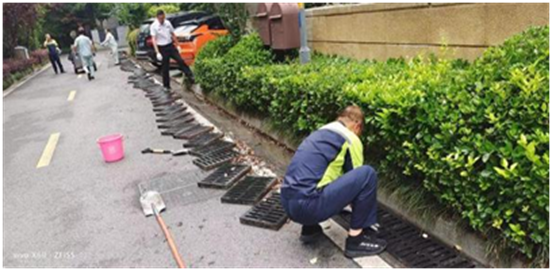 6月下旬入梅后,各項目堅持“雨前排查、雨中巡查、雨后復查”的原則,在易積水區域鋪設擋水沙袋防止內澇倒灌,清除排水口、雨水管道內的雜物,保持排水溝、下水道通暢無阻;持續加固并修剪影響主干道安全的樹木枝葉,及時清除小區路面、廣場和綠化帶的落葉、零星垃圾;對于一切可能存在的安全隱患開展全方位、無死角的巡視排查,為小區業主筑起一道牢固的安全防護墻。